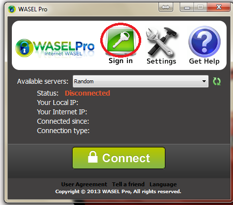 If you're using WASEL Pro for trial, select the server and click on "Connect"